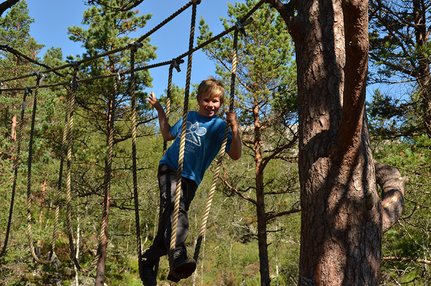 Trecamp: Her kan du virkelig boltre deg i hytter hengende i trær med gangbruer mellom. Gå fra hytte til hytte og fra tre til tre! Vi har bygget en hinderløype like ved som også går fra tre til tre hvor alle kan finne tøffe utfordringer.